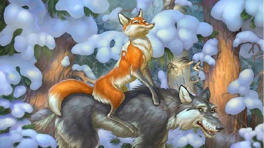 Села лисица волку на спину. Он её и повёз. Вот лисица едет на волке и потихоньку поёт: