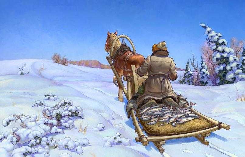 — Ты, баба, пеки пироги, а я запрягу сани да поеду за рыбой.