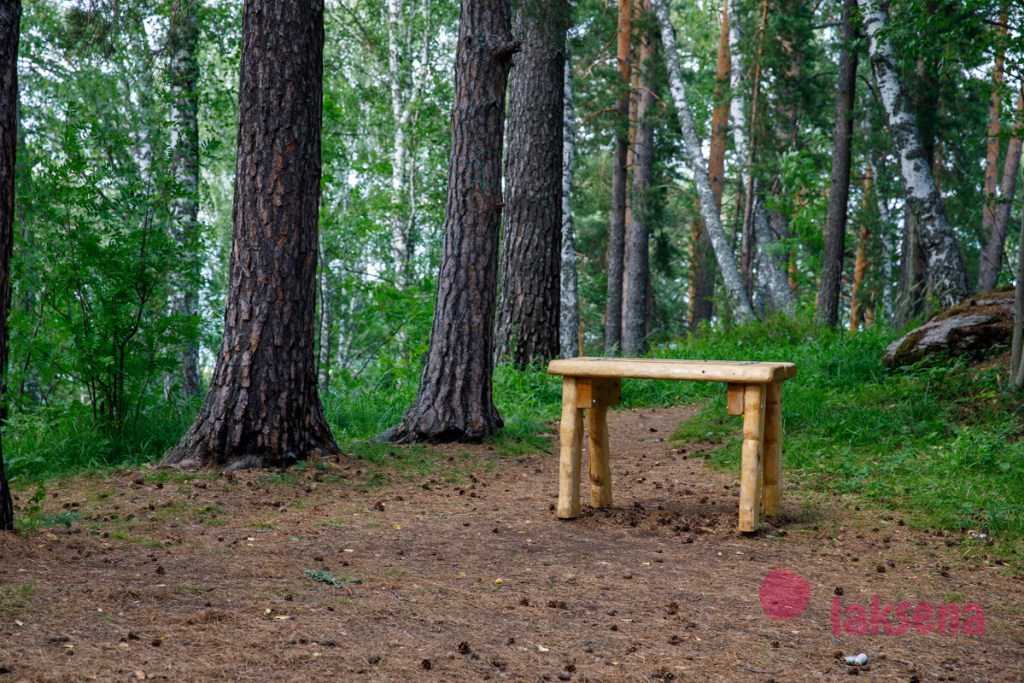 Еще неожиданно было встретить посреди леса … лавочку! Но оказалось, что это реклама экскурсии на пасеку.