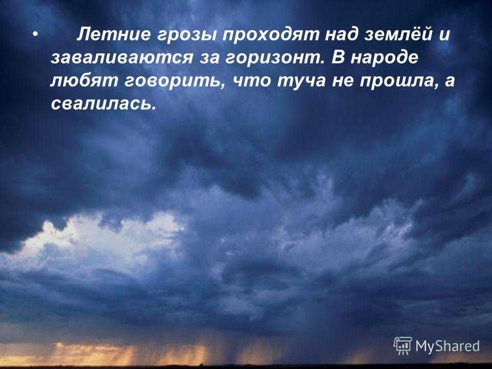 Летние грозы проходят над землёй и заваливаются за горизонт. В народе любят говорить, что туча не прошла, а свалилась.